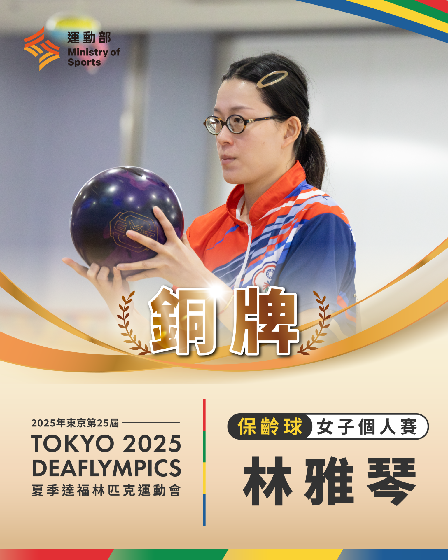 東京聽奧保齡球男團奪銅 賴總統致電申賀2025/11/23 18:40點閱:10日職西武獅宣布與林安可簽約 挑戰日職大展身手2025/11/22 15:48點閱:12東京聽奧羽球女單沈彥汝奪銀 代表團累積4銀4銅2025/11/21 18:48點閱:13東京聽奧再獲佳績 保齡球女子個人賽奪2銅2025/11/20 16:37點閱:19東京聽奧再傳佳績 桌球男雙進帳2銅2025/11/19 19:14點閱:21東京聽奧我代表團再添2銀 賴總統致電申賀2025/11/19 15:22點閱:20健力世錦賽楊森臥舉奪金 賴總統致電申賀2025/11/16 15:30點閱:302025東京聽奧開幕 我代表團依字母T排序進場2025/11/15 19:08點閱:33東京聽奧明開幕 運動部為代表團祈福2025/11/14 16:42點閱:33射箭亞錦賽反曲弓 中華隊混雙奪金、女團摘銀2025/11/14 16:01點閱:25健力世錦賽江凱傑奪金 賴總統致電申賀2025/11/13 15:19點閱:34 回體育列表